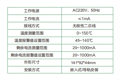2、额定剩余电流报警动作值,可根据需要灵活设置,温度报警动作值也可编程。